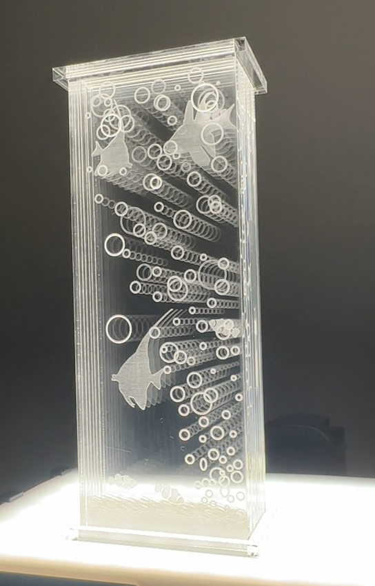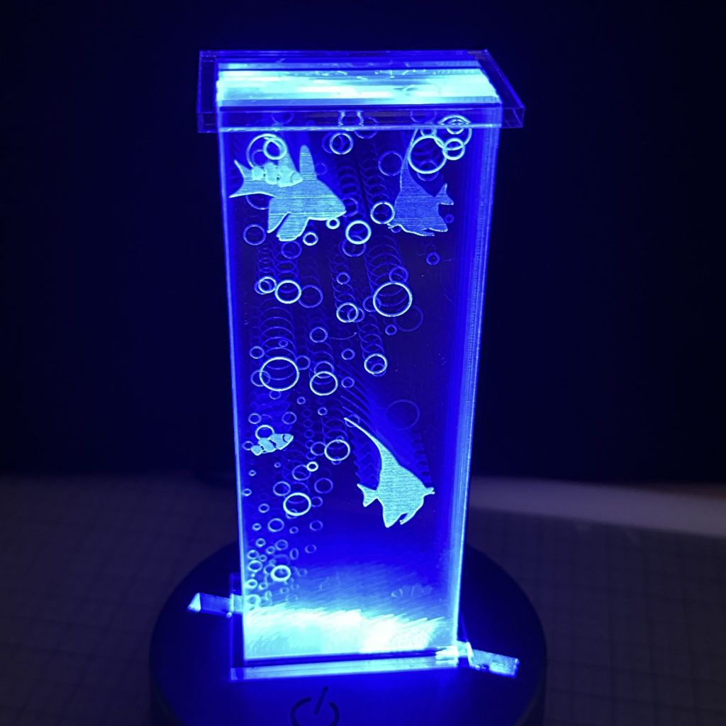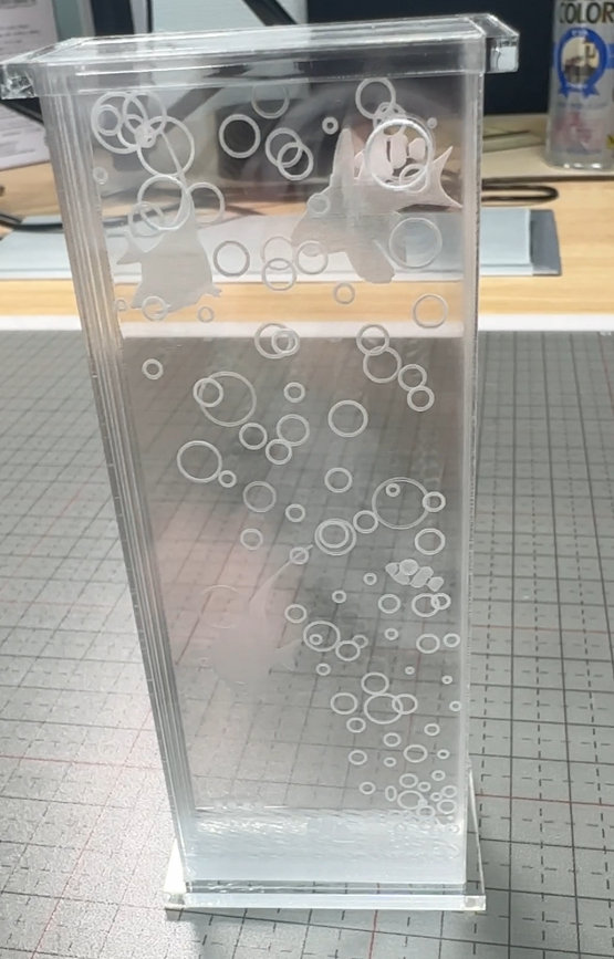 奥行きがあるので風景等デザインを考えていましたが、実験なので作りやすい水槽をイメージすることにしました。