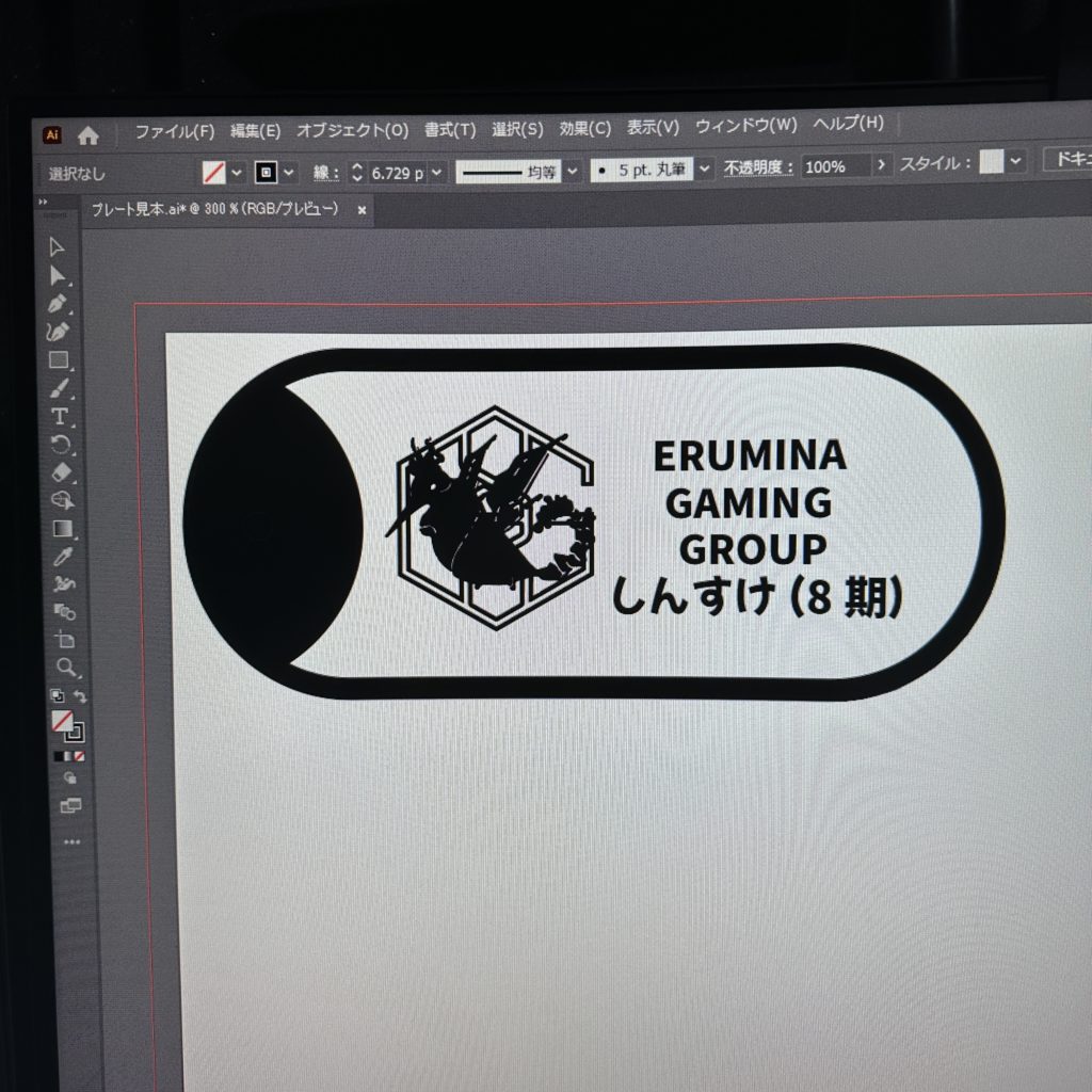illustratorを使ってデザインしました。他のペイントソフトやWordなどでも白黒のデザインが作れれば問題ありません。ただカットするラインの指定だけはレーザー彫刻機の指定するソフトを使う必要があります。GCC LaserProシリーズはillustratorで出力するのでデザインの時から使っています。