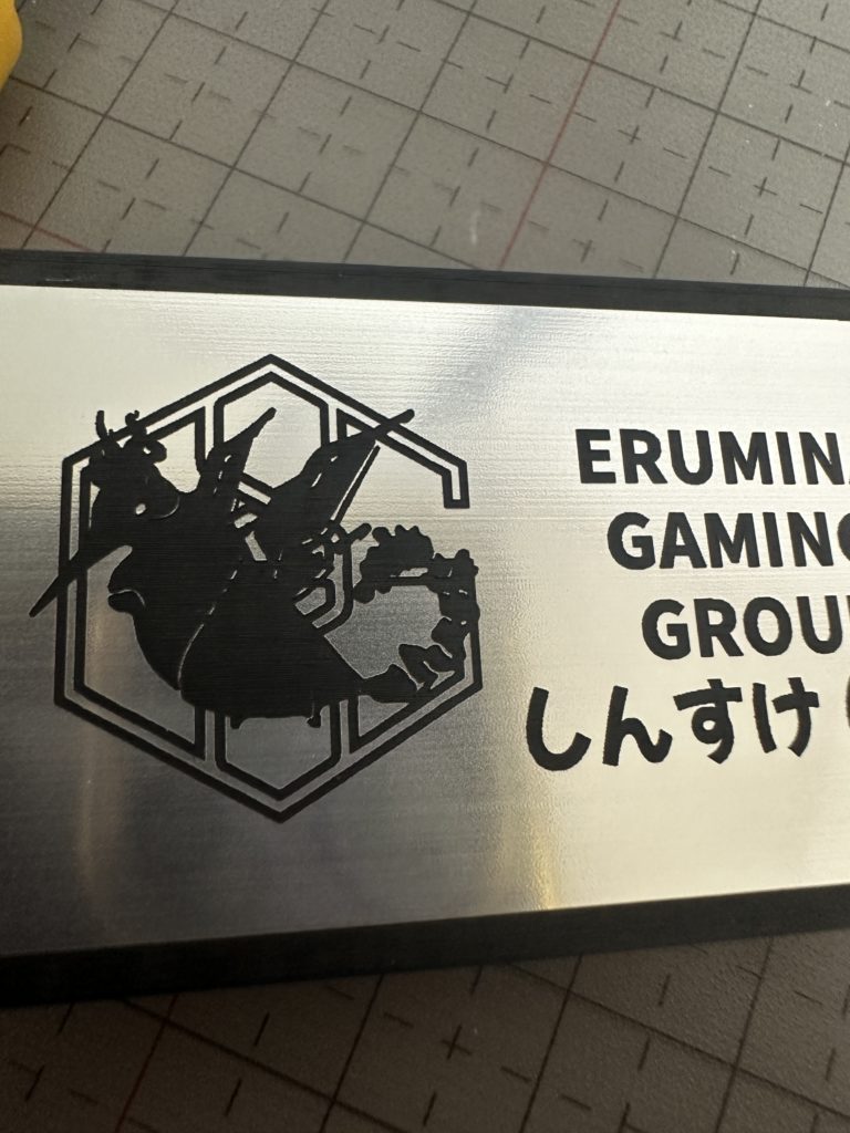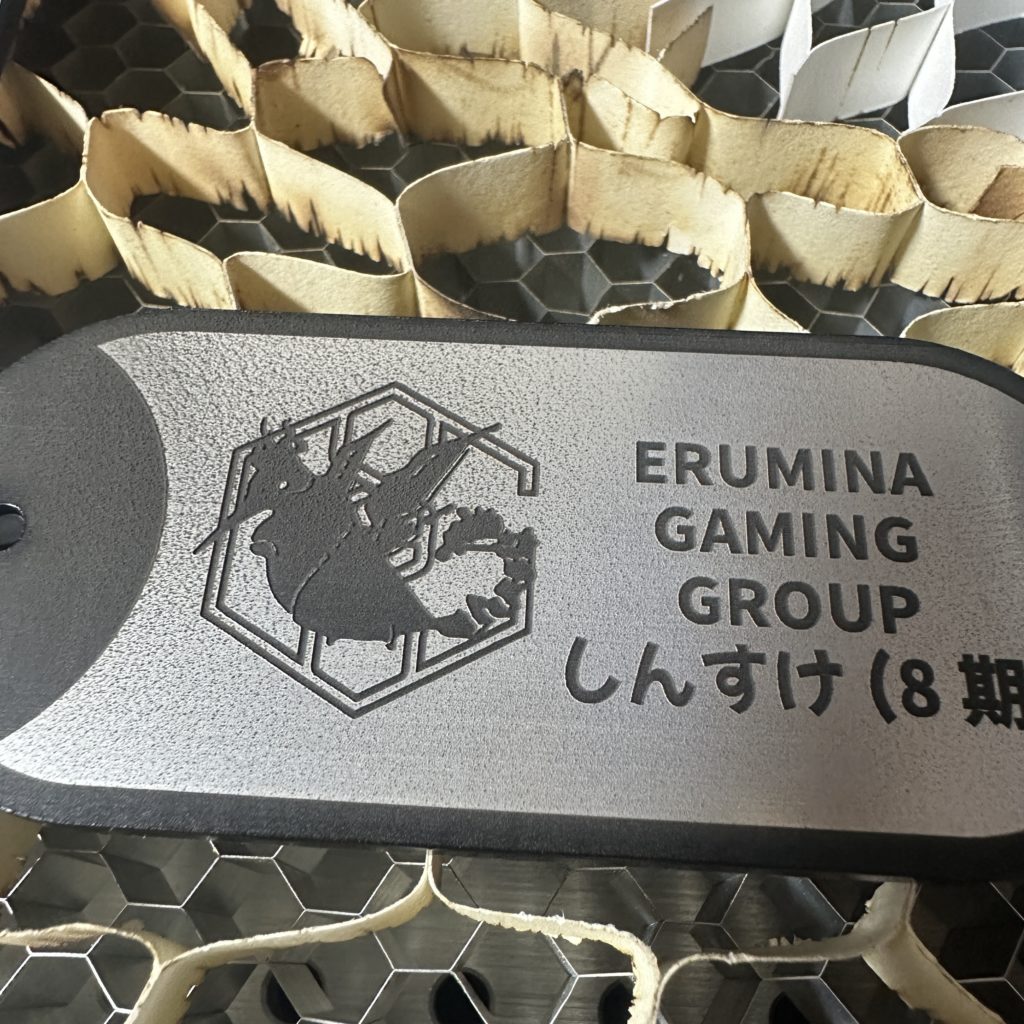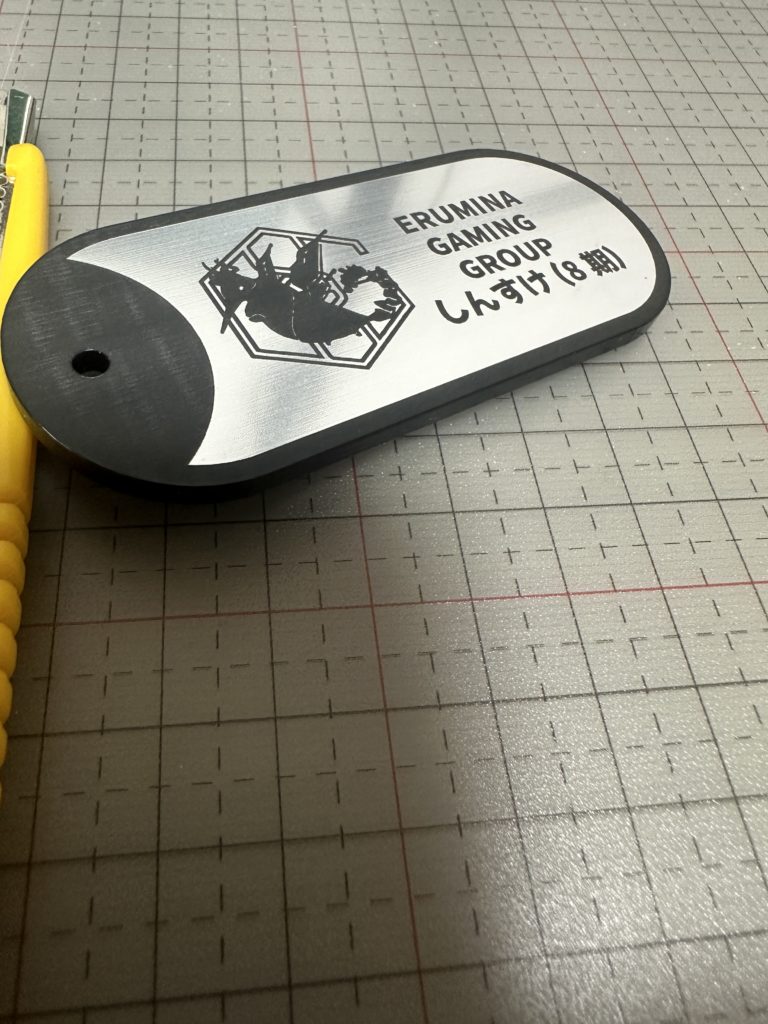 このグッズはうちのレーザー彫刻機は非対応です。理由はアルミのプレートレーザーにもいろいろ種類がありレーザーの波長によって彫刻するものが変わります。利用している「GCC LaserProシリーズ C180Ⅱ」は金属に全く反応しないタイプです。このまま出来ないで終わるのは嫌だったので何とか悩みに悩んで何とかここまでたどり着きました。