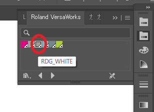 ローランドのUVプリンターはillustratorのスウォッチで色指定することで白印刷が出来ます。