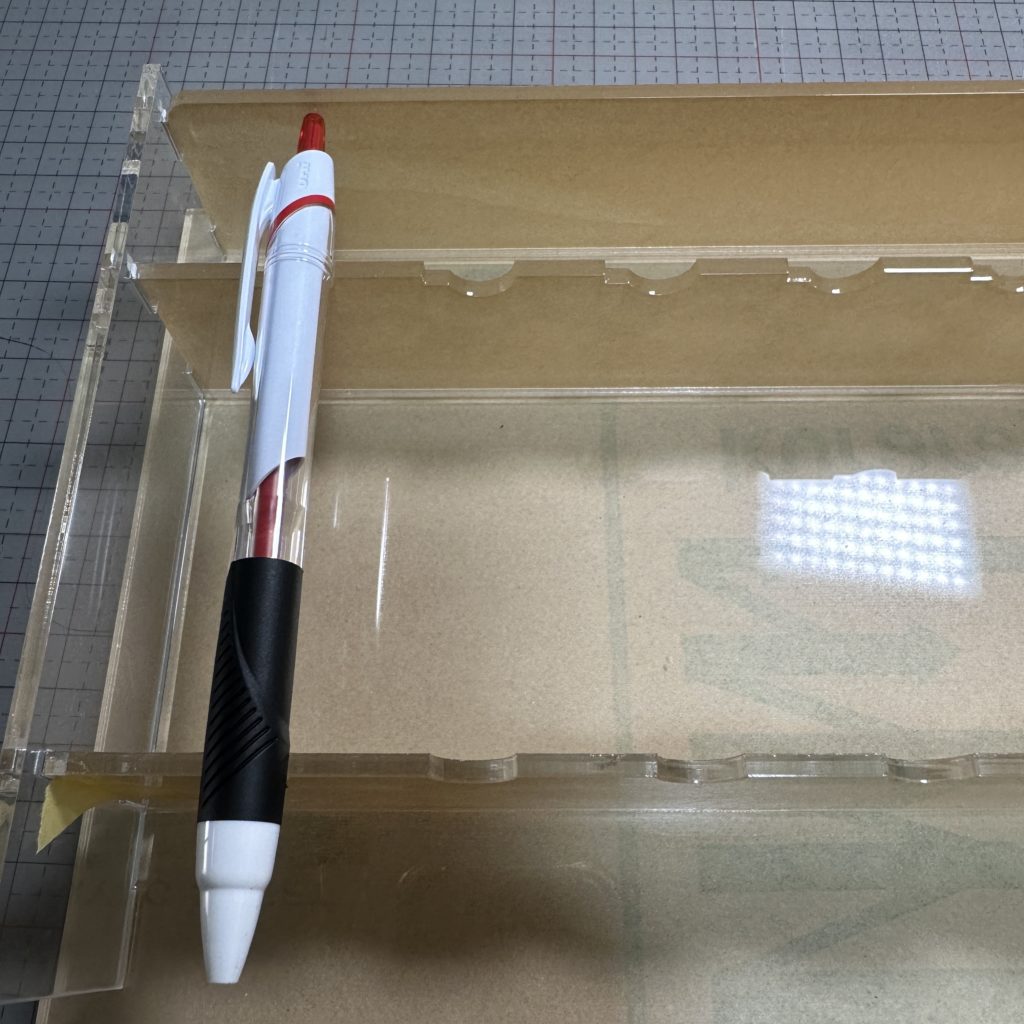 今後大量に作る予定がある場合は専用のジグを作る方が多いです。段ボールに穴をあけて固定の台にする方やアクリルをカットして作る方が多いです。私もボールペンに関しては試行錯誤しながらジグを作りました。